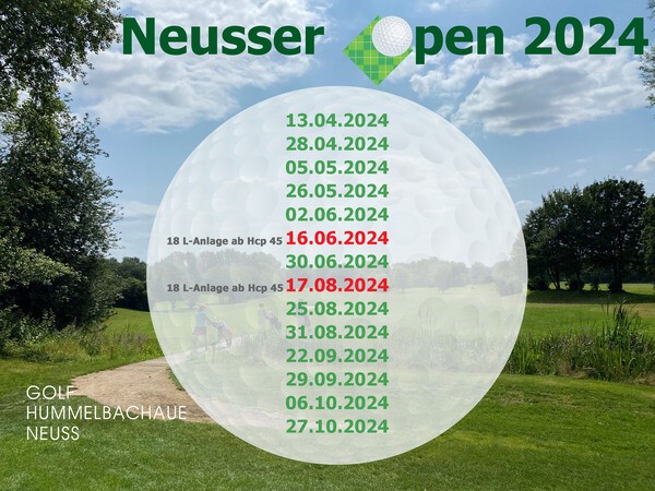 dieses Jahr gibt es die Neusser Open erstmalig an zwei Terminen auf der 18-Loch-Anlage!