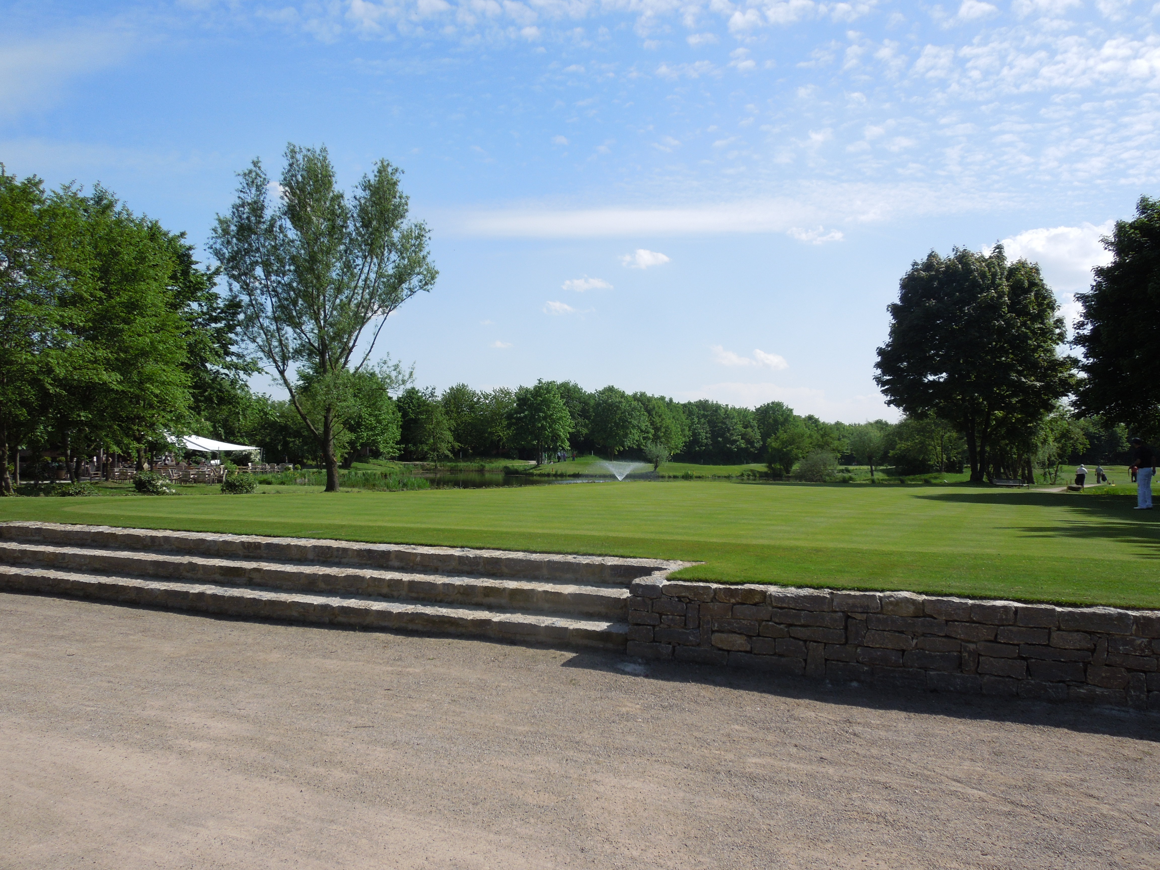 Am Wasser gelegen und eingerahmt von einer Natursteinmauer und einem neu angelegten Blumenbeet, bildet das neue Übungsgrün ein besonderes Highlight auf unserer Golfanlage.